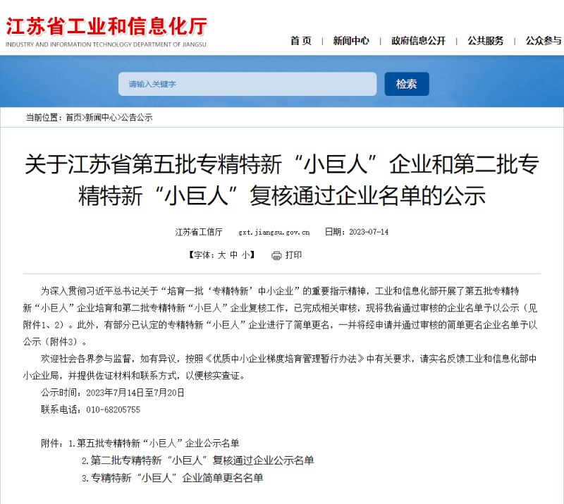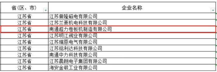 近日,江蘇省工信廳發(fā)布《關(guān)于江蘇省第五批專精特新“小巨人”企業(yè)和第二批專精特新“小巨人”復(fù)核通過企業(yè)名單的公示》。我們南通超力卷板機(jī)制造有限公司上榜第五批國家級(jí)專精特新“小巨人”企業(yè)名單。
