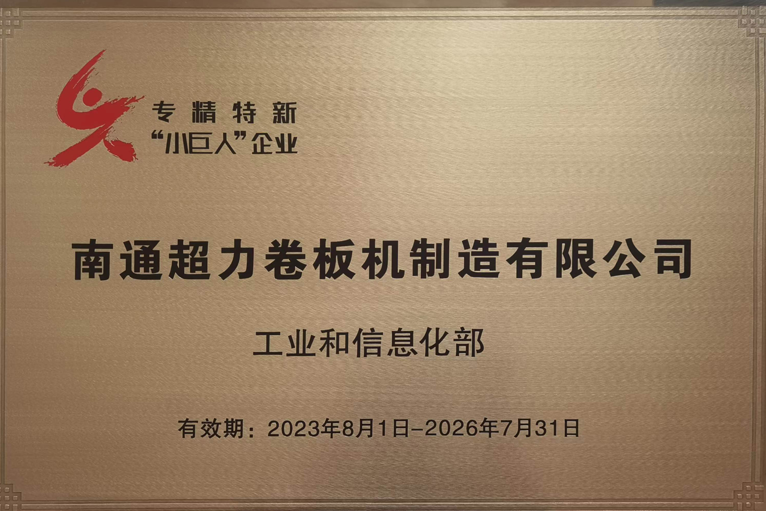 南通超力卷板機(jī)公司憑借15年來對(duì)卷板機(jī)領(lǐng)域的專注耕耘,堅(jiān)持自主創(chuàng)新,夯實(shí)核心競(jìng)爭(zhēng)力,成功入選2023年國家級(jí)專精特新“小巨人”企業(yè)名單。